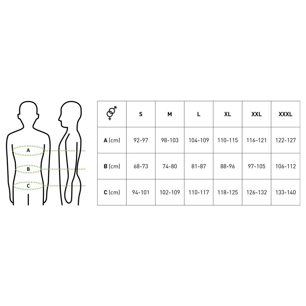 A férfi modell 1,72 m magas és M-es méretet visel, a női modell 1,56 m magas és XS-es méretet visel.