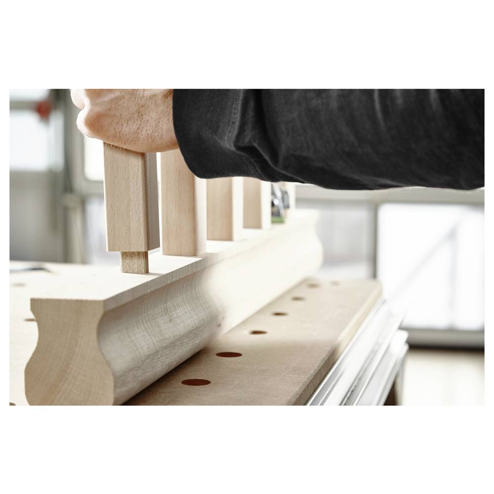 A speciális forma, a duzzadó ragasztózsebekkel és a hosszanti hornyokkal kombinálva biztos tartást biztosít a dübeleknek. Teljesen elfordulásbiztos csatlakozások és maximális stabilitás. És mindezt jelentősen gyorsabb feldolgozással: az első dübelfurat nagyon könnyen beállítható és precízen kimarható az ütközőcsapok segítségével. Azonnal rögzíti a munkadarabokat, hogy precízen és a szélekkel egy síkban legyenek az illesztendő darabok. A DOMINO rendszer a későbbi dübelfuratok kisebb pontatlanságait is tolerálja.