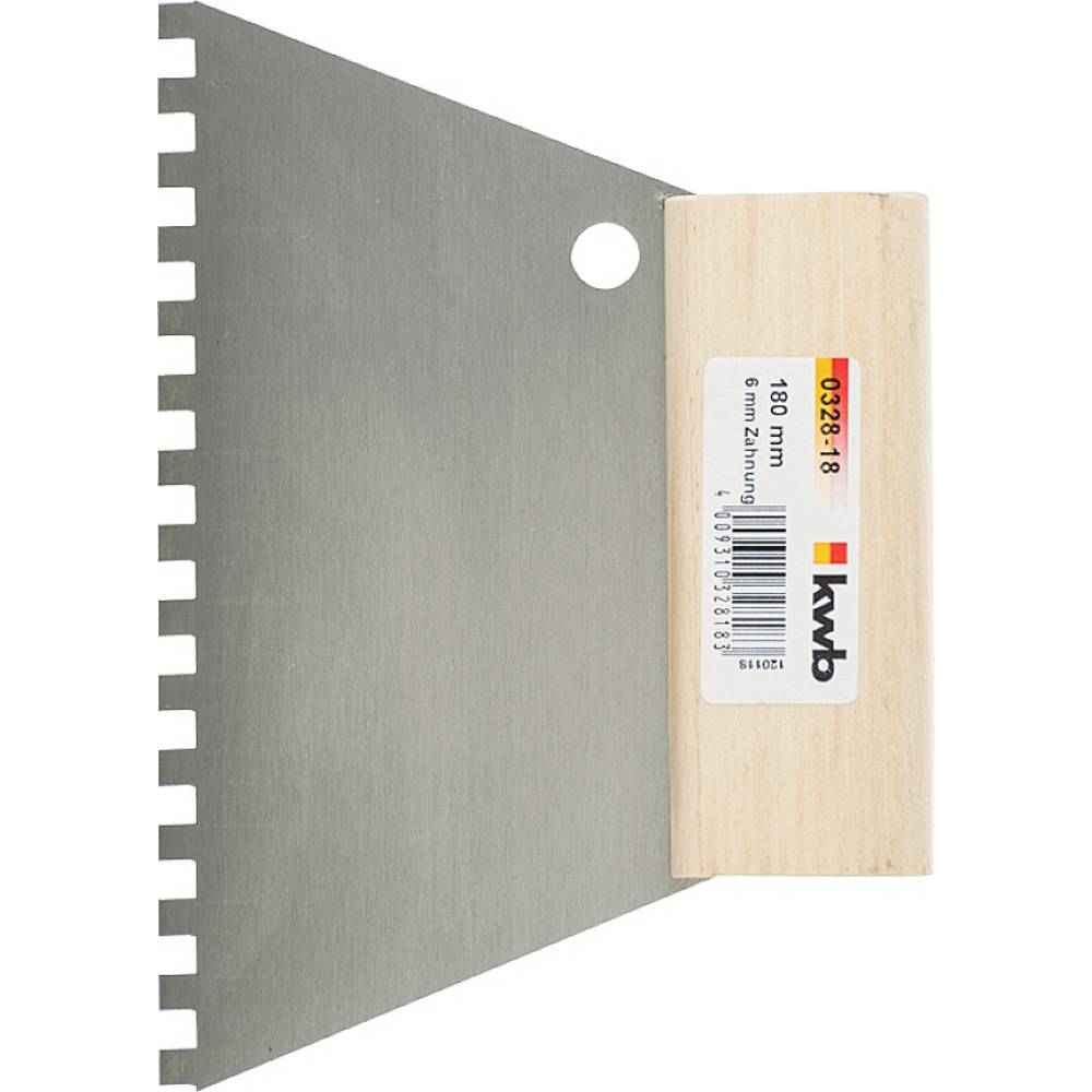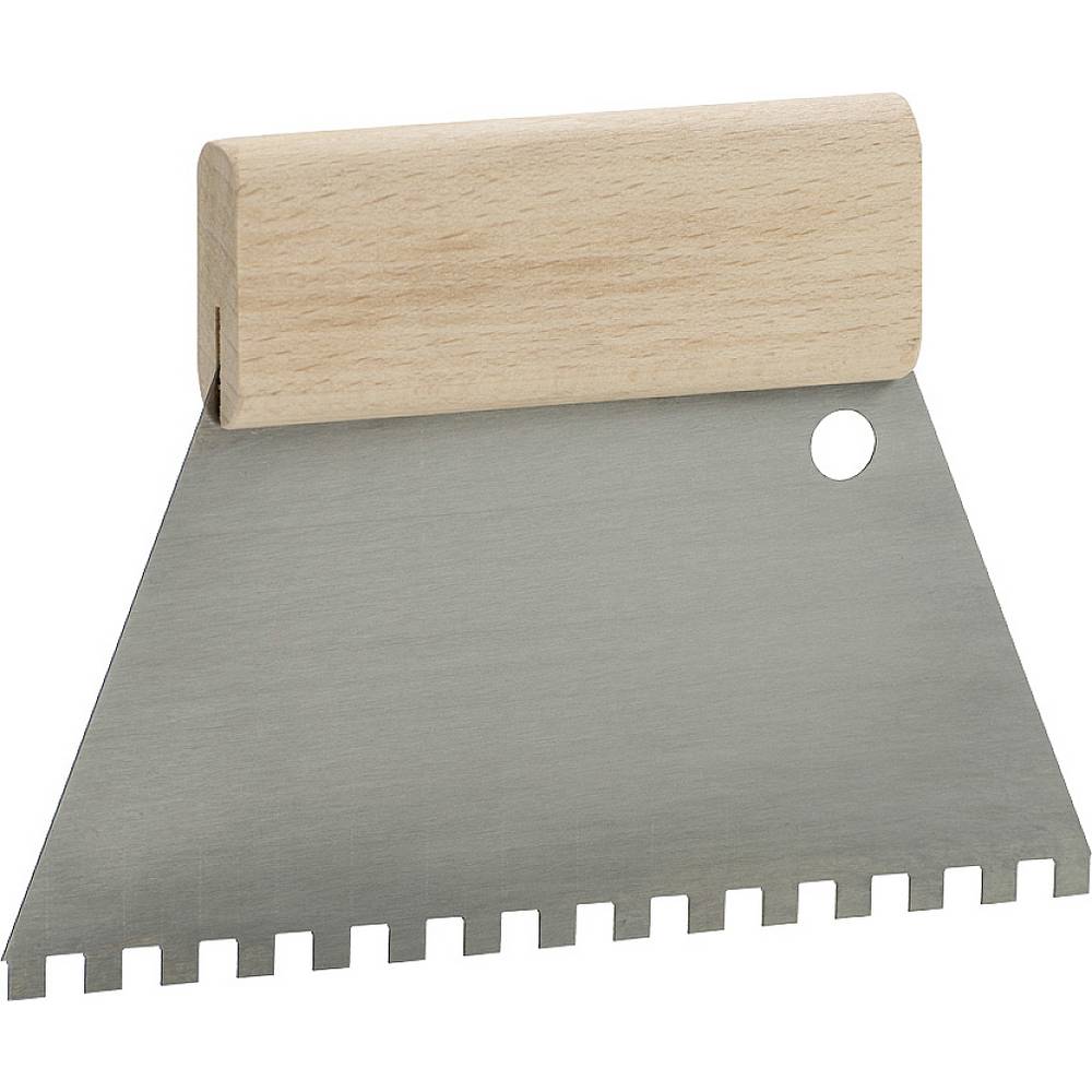 Fém penge, fényes acél, trapéz alakú, fa nyél, ragasztó, csemperagasztó, vékonyágyas habarcs és vakolat felhordásához