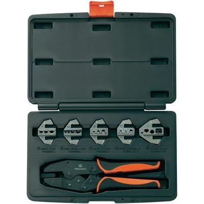 Racsnis krimpelő fogó sarukhoz, érintkezőkhöz, 5 db cserélhető betéttel Toolcraft 430461