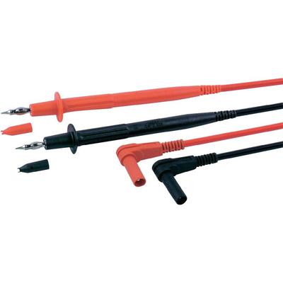 +70 °C · Kábel típus: Biztonsági mérővezeték készlet · Kábelhossz: 1 m · Mérési kategória: CAT II 1000 V · Névleges feszültség: 1000 V · Névleges áram: 20 A · Szín: Fekete,Piros · Vezeték-keresztmetszet: 1 mm² · Érintkezőanyag: Ni · Ø/Dugótípus: 4 mm átmérőjű biztonsági könyökös dugók és 4 mm-es rugókosaras mérőhegyek
