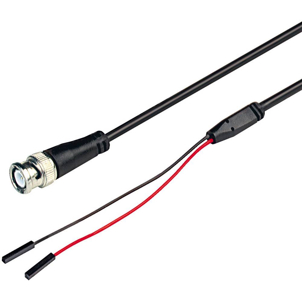 BNC adapter-vezeték. Szigetelt hüvelyek 0,64 mm átmérőjű stifthez. Belső vezeték piros, árnyékolás fekete. Kábeltípus: RG 58 A/U, 50 ohm oszcilloszkóppal, PC-kártyával, stb. való méréshez.