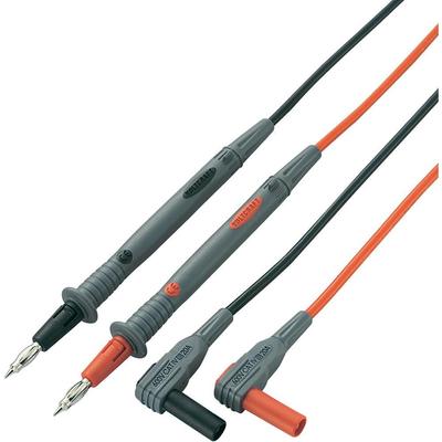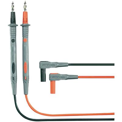 Igen hajlékony, szilikon, biztonsági mérővezetékek, ideális multiméter használatához. A II kategóriában 1000 V alatti méréseknél a mérőhegyekről a védőkupakot el lehet távolítani. Az ezáltal szabaddá tett 4 mm-es rugós kosaras dugók biztonságosan érintkeznek a dugaszoló aljzatokkal és labor mérőhüvelyekkel. A kétszínű kettős szigetelés által a mérővezetékek esetleges sérülései azonnal felismerhetők.